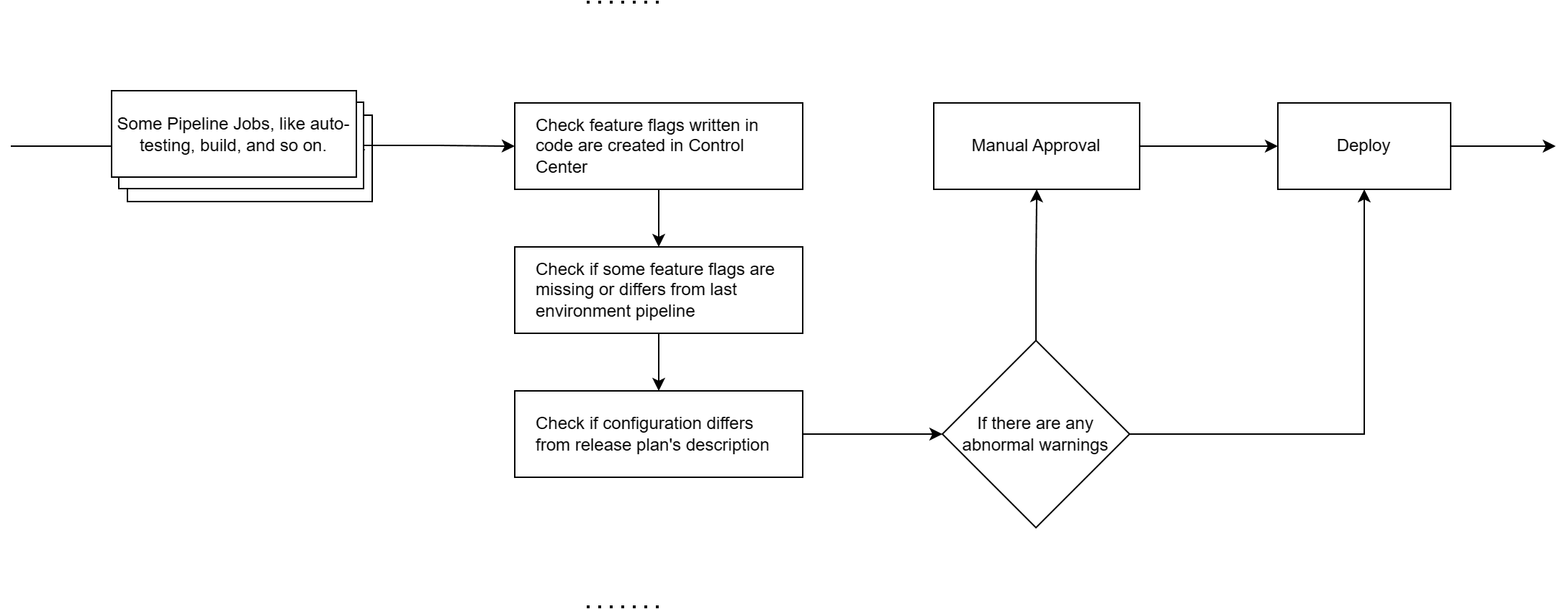 If the responsible person finds a problem, they can adjust the configuration in the feature flag management system before the deployment. We can also add a check gate in the pipeline to remind the responsible person to check the configuration manually.